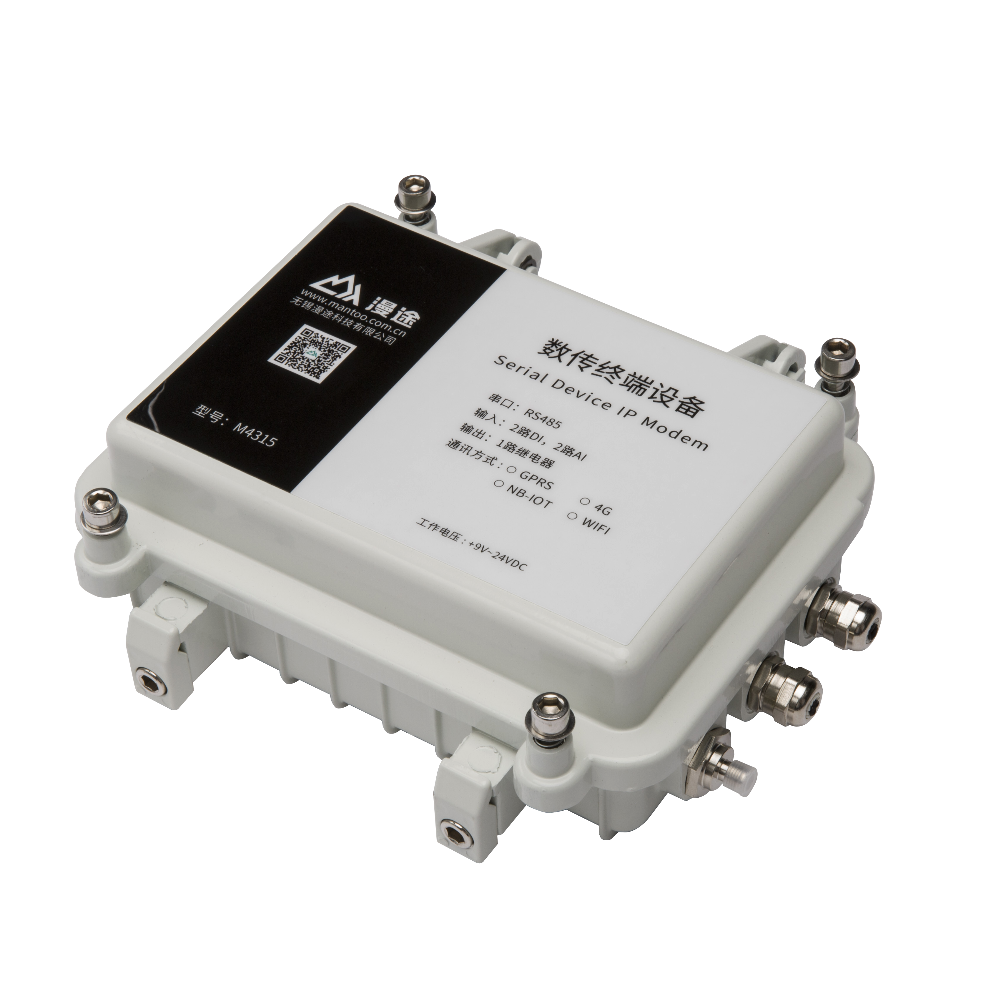 MTRM4-4-1A(M4315)是集成了2路模拟信号采集、2路开关量输入、1路继电器输出和无线数据通信于一体的高性能测控装置,可以直接接入各种传感器、标准变送器信号、仪表等输出的模拟信号、电平信号、干触点等,并且采用IP67等级防护,是恶劣环境实施无线测控的终端选择。